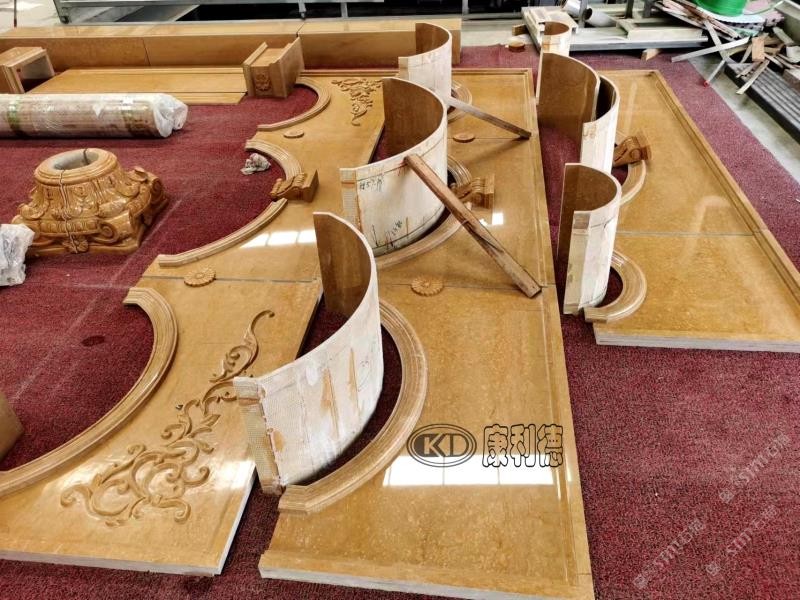 工廠引進6臺紅外線橋切,8臺水刀切割設備,多臺cnc數控雕刻設備,全套異形加工及馬賽克設備,技術嫻熟的團隊,多年累積的生產經驗,專業(yè)生產加工:水刀拼花、cnc數控雕刻、精工背景墻、工程板、馬賽克、拼圖、異形腰線、復合板等各類工程精裝石材。?\