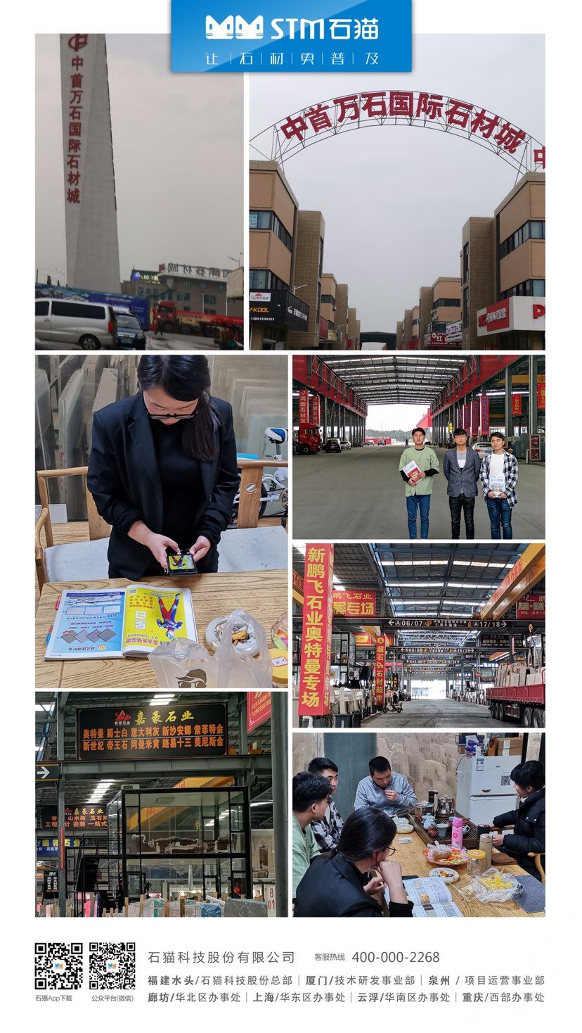 華東分公司先后與華東石材市場(chǎng)合作,包括上海東華環(huán)球石材市場(chǎng)、中首萬(wàn)石國(guó)際石材市場(chǎng)、南通東升產(chǎn)業(yè)園、六泉國(guó)際石材市場(chǎng)等,隨后又與華東知名石材企業(yè)南通新景石材有限公司、隆川石材、康典石業(yè)、新鵬飛石業(yè)、宜興隆嘉石業(yè)、新澤海石業(yè)、南通杰恒石業(yè)、珍品玉石合作,打造共贏局面。石貓致力于與各大優(yōu)秀石企共同進(jìn)步,共同發(fā)展,尋求石材行業(yè)新發(fā)展。