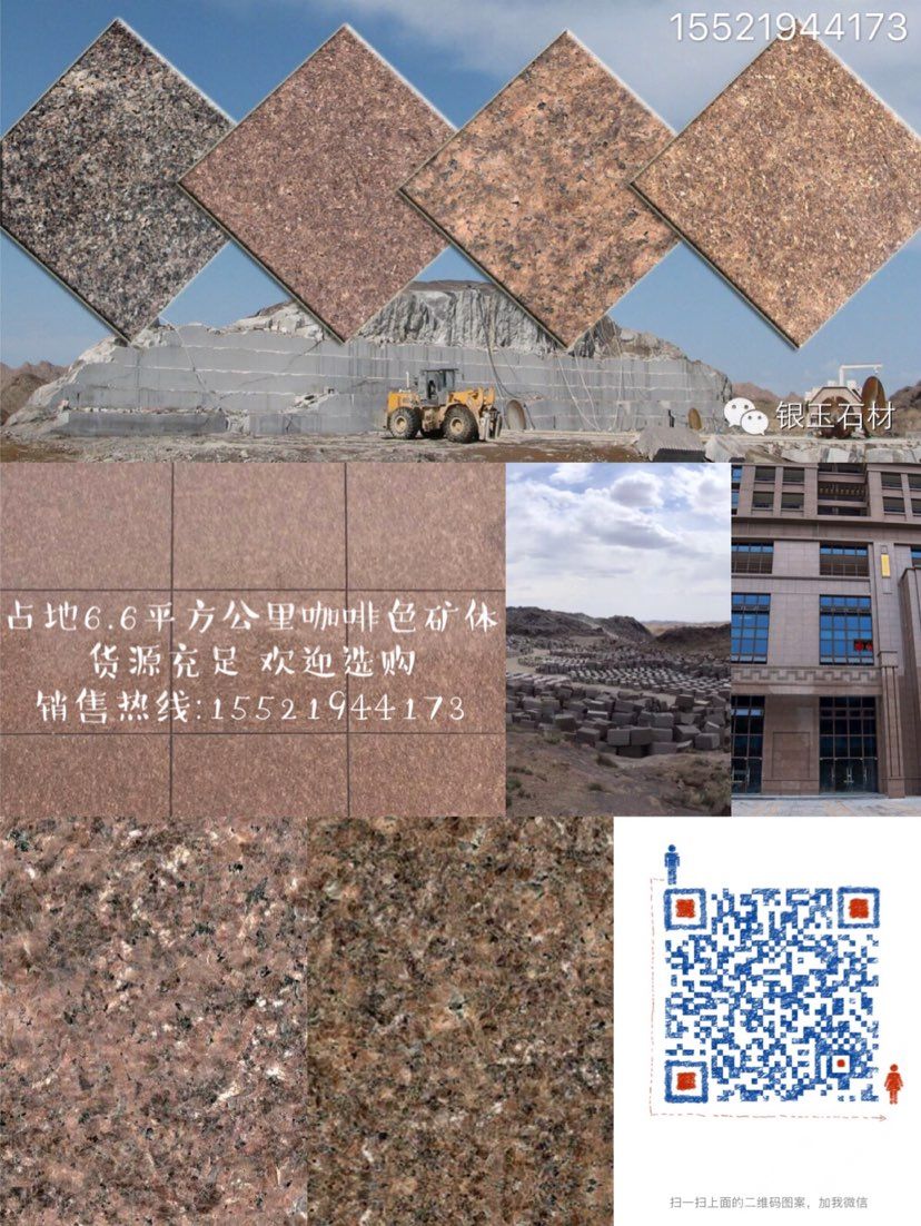新疆銀玉石材集團有限公司(新疆勝拓石材);本集團是一家集石材礦山開采、板材(含異型石材)加工、銷售、出口及石材研究于一體的專業(yè)性石材開發(fā)企業(yè)集團,擁有六家直屬企業(yè)和一個研究所。銀玉集團在哈密市奧莫爾塔格南擁有開發(fā)權的花崗巖石礦區(qū),該礦區(qū)主要出產(chǎn)商品名稱為“奧莫爾咖啡鉆,金鉆,細啡鉆”花崗巖飾面石材荒料(經(jīng)國家石材質量檢測中心評定為A類裝修材料,產(chǎn)品產(chǎn)銷與使用范圍不受限制),該礦點荒料資源儲量5000萬m3。集團擁有一批優(yōu)秀的管理人員及技術精湛的員工隊伍,礦區(qū)已進駐八個開采隊伍,共計二百余人,同時引進國內外先進水平的生產(chǎn)設備,集團在哈密市有色金屬工業(yè)園擁有2條板材生產(chǎn)線,配備40臺液壓16片鎖緊柱式及橋式切石機、8臺20T全自動花崗巖條板拋光機和4套紅外線自動橋式切邊機,占地200畝,年產(chǎn)量200萬m2。以|S09000質量管理體系來規(guī)范生產(chǎn)的每一環(huán)節(jié),建立了完善的質量管理體系,保證了生產(chǎn)\