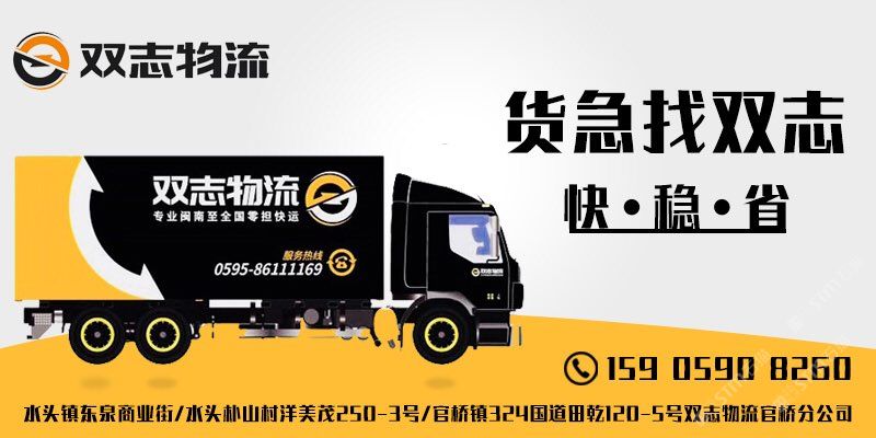 泉州市雙志物流有限公司,成立于2004年專注閩南至全國零擔(dān)快運(yùn),現(xiàn)已加盟順豐集團(tuán)順心快運(yùn)平臺(tái)、專業(yè)石材、瓷磚、設(shè)備、鋸片大型機(jī)械設(shè)備等整車零擔(dān)貨物運(yùn)輸。全國統(tǒng)一服務(wù)熱線:0595-86111169 手機(jī)微信同號:13505987769/15905908260李(女士) #水頭雙志物流專業(yè)閩南至全國零擔(dān)快運(yùn)、倉儲(chǔ)配送!#