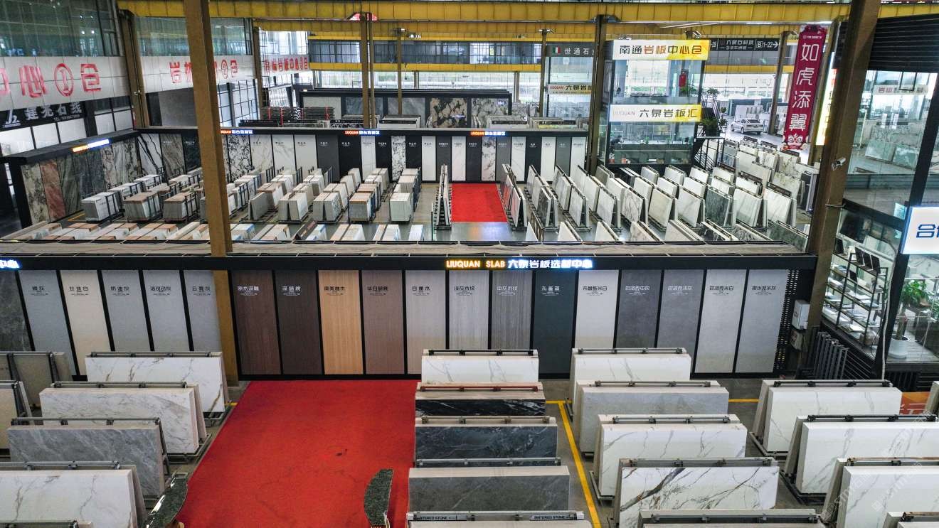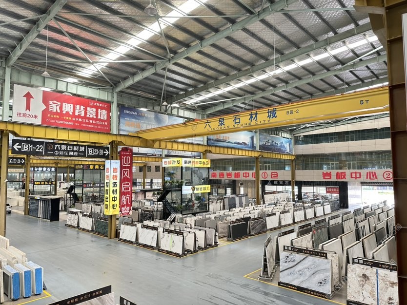 中國(guó)江蘇南通六泉石材城3號(hào)通道六泉巖板中心倉(cāng)