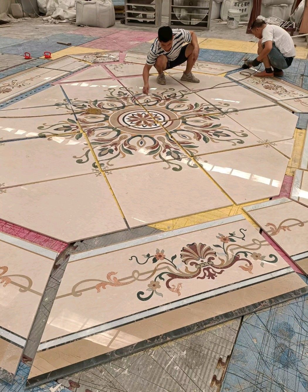 公司水刀拼花生產(chǎn)線:擁有6臺(tái)大型水刀設(shè)備,拼花年產(chǎn)量達(dá)10000多平方米。水刀師傅從業(yè)時(shí)間久,誠信務(wù)實(shí),質(zhì)量好!所生產(chǎn)的工藝拼圖暢銷全國及世界各地,是別墅建筑至善至美的選擇。