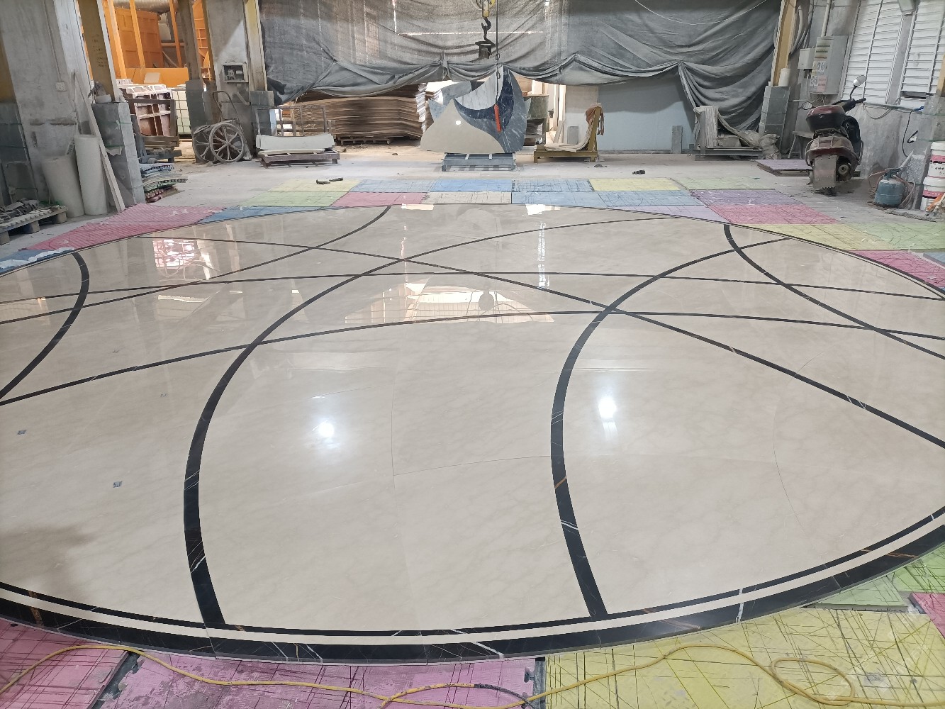 熊大水刀拼花,集石材水刀拼花(拼花鑲嵌貝殼類/拼花鑲嵌銅板類/拼花鑲嵌鋼板類)、石材產(chǎn)品開發(fā)及工藝設(shè)計(jì)生產(chǎn)等為一體的頗具規(guī)模的企業(yè)。公司設(shè)有石材工藝展廳、位于福建省泉州市南安市水頭鎮(zhèn)蟠龍工業(yè)區(qū)嘉豐二廠工程運(yùn)營中心,擁有兩個(gè)大型石材加工廠,設(shè)有水刀拼花生產(chǎn)線,自動(dòng)水磨石加工生產(chǎn)線。