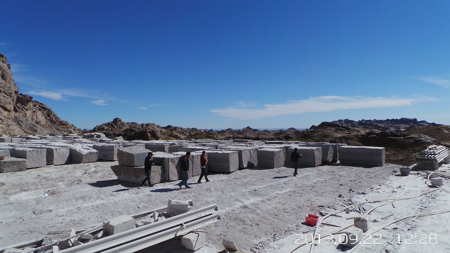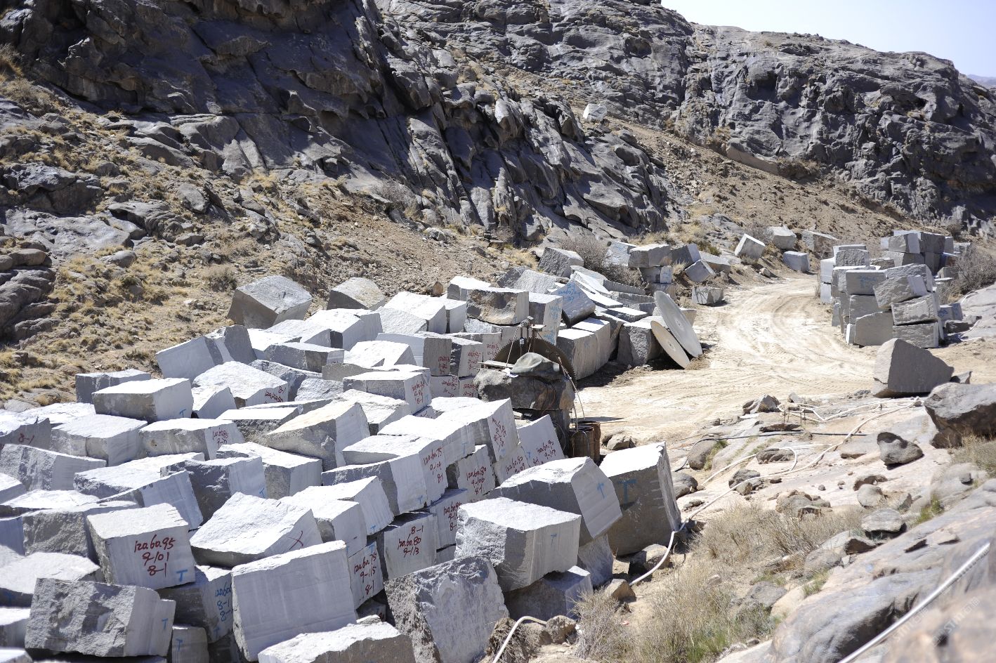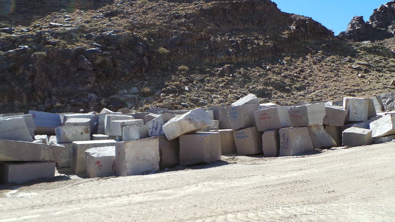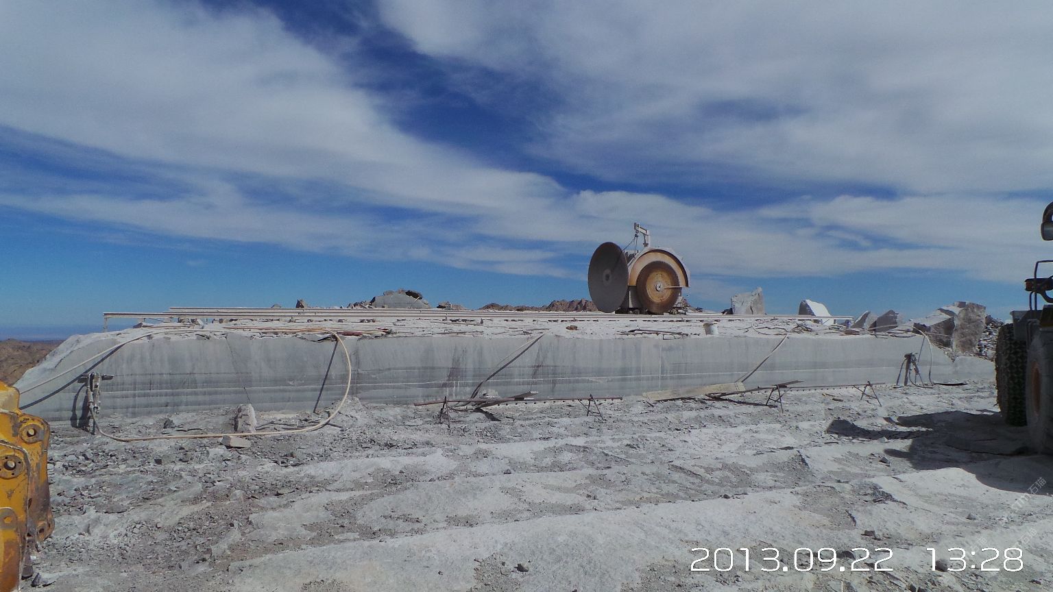 新疆煒通石材工貿(mào)有限責(zé)任公司成立于2007年,是一家集礦山開采、板材加工為一體的石材公司。公司擁有的奧莫爾塔格礦山位于哈密市東北方向,直線距離約160千米,礦區(qū)面積1.25平方千米,資源儲量約800萬立方米。礦山擁有一批優(yōu)秀的管理人員、技術(shù)精湛的開采隊(duì)伍和先進(jìn)的機(jī)械設(shè)備,現(xiàn)有柴油發(fā)電機(jī)組8臺,濕式切石機(jī)6臺,滿負(fù)荷生產(chǎn)規(guī)劃為每年5萬立方米。