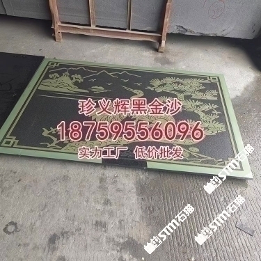 印度黑金沙石材黑金砂牌匾浮雕石雕印度黑石安哥拉黑