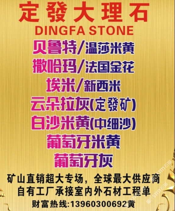 發(fā)布信息: 貝魯特/溫莎米黃,工程外墻干掛? 葡萄牙米黃/葡米,工程外墻干掛★ 撒哈瑪/法國金花,室內外材料?? 埃米、新西米,超白低室內外材料★ 云朵拉灰,專為工程而打造,超性價比 白沙米黃/中細沙,室內外材料?? 令每個工程交付,做到驗收無憂???? (質與量的保障者、經(jīng)得起層層考驗)???? 全球供應商,各大地產指定供應商? 承接國內外室內外石材工程訂單???? 致富專線:13960300692黃