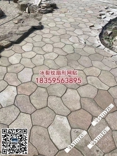 廈門工地黃銹石冰裂紋地鋪石扇形網(wǎng)貼六角磚亂拼碎拼石