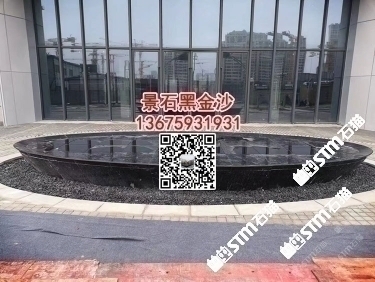 印度黑金沙花崗巖水池水景工程水池幕墻干掛背景墻定制