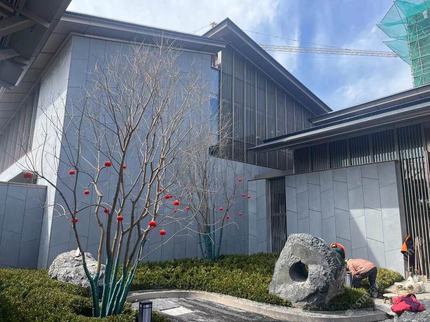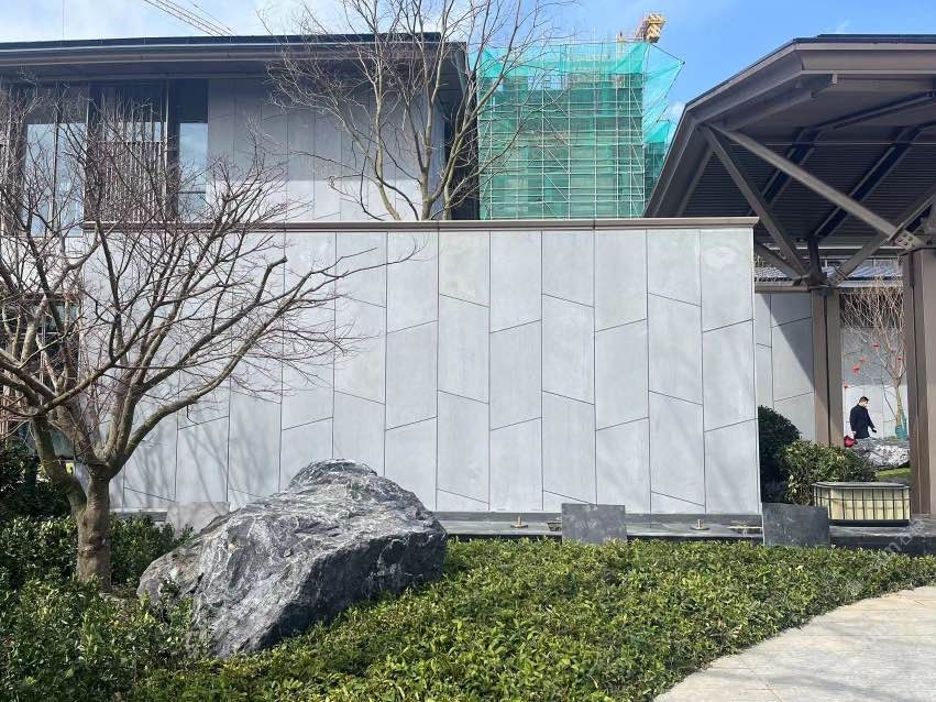 無機灰洞石,啟東城投大雅風(fēng)華售樓處外墻應(yīng)用案例