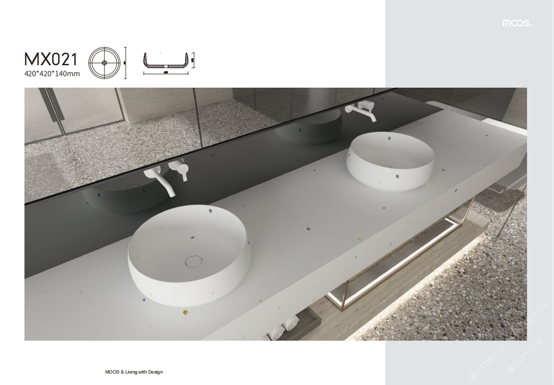 「MOOS魔石衛(wèi)浴」無機水磨石一體化臺盆設(shè)計