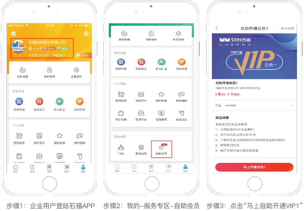 企業(yè)用戶自助開通VIP1會(huì)員,不用聯(lián)系客服,不用聯(lián)系市場(chǎng)人員,在“石貓-積分商城-VIP會(huì)員服務(wù)”自助購(gòu)買支付即可開通。
