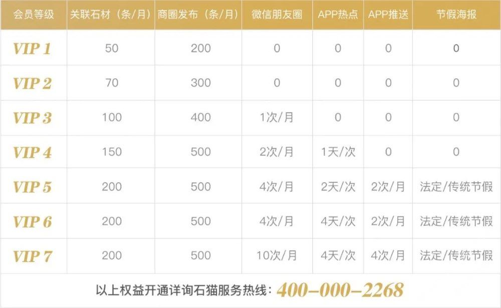 VIP1-VIP7會(huì)員增值服務(wù)明細(xì)表