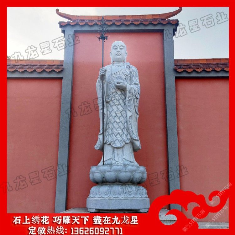 發(fā)布信息: 石雕地藏王座像 地藏王菩薩石刻像 廠家定制——九龍星石業(yè)。 石雕地藏王座像以一頭形似獅子的怪獸為坐騎的,名號(hào)曰:“諦聽”。諦聽又稱“獨(dú)角獸”,“地聽”,“善聽”,乃九華山鎮(zhèn)山之寶,相傳為金地藏菩薩坐騎。地藏王菩薩石刻像一般都是以光頭或者戴個(gè)五佛冠,也就是法師常戴的帽子。地藏王菩薩還有一個(gè)大的特點(diǎn)就是右手會(huì)有一根禪杖;左手當(dāng)胸棒有一顆寶珠。 石雕地藏王座像或稱地藏王菩薩,曾音譯為“乞叉底蘗沙”。因其“安忍不動(dòng)如大地,靜慮深密如秘藏”,故名地藏。為佛教四大菩薩之一,與觀音、文殊、普賢一起,深受世人敬仰。以其“久遠(yuǎn)劫來屢發(fā)弘愿”,故被尊稱為大愿地藏王菩薩。
