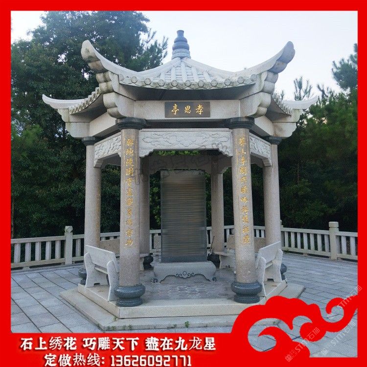 白麻六角亭子 戶外石材石雕亭子雕刻廠家