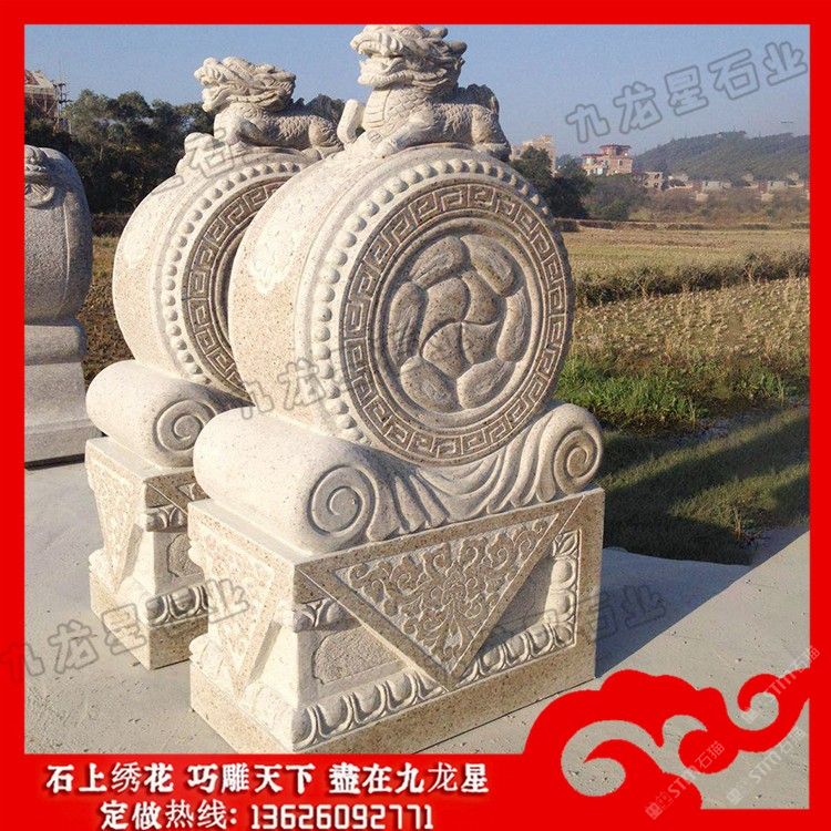 發(fā)布信息: 石雕圓形抱鼓石 門墩抱鼓石圖片及價格——九龍星石業(yè)。 石雕圓形抱鼓石的方圓有著不同的寓意,在古代,方形的門墩多為文官使用,圓形的門墩多為武官使用。門墩借助人物、草木、動物、工具、寓言、幾何圖案,石頭抱鼓石上面的瑞獸表達了四合院的建筑者們希望長壽、富貴、驅(qū)魔、夫妻美滿、家族興旺的美好心愿。獅和世諧音,雕九只獅子的圖案是九世同居,表示合家團聚、同堂和睦的祝愿。 石雕圓形抱鼓石上面的瑞獸有獅子、麒麟、大象等靈獸。古代,不同地位官階等級的門戶擺放的抱鼓門石是不同的,文官用書箱形、武官用獸吻形,而古代住所高管門前門墩石的石獅子等靈獸一般都比較大,象征著地位和財富。