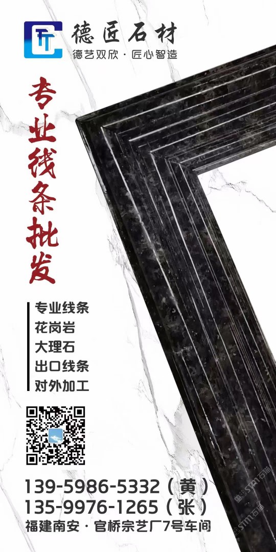 德匠石線|線條 聯(lián)系人:張總    135****1265 查看 135****1265 查看 主營范圍: 大理石加工、異型加工、石材雕刻、人造石加工、水刀拼花、 企業(yè)地址:福建南安官橋鎮(zhèn)宗藝廠7號車間(荒料堆場航吊過道直走右轉(zhuǎn))