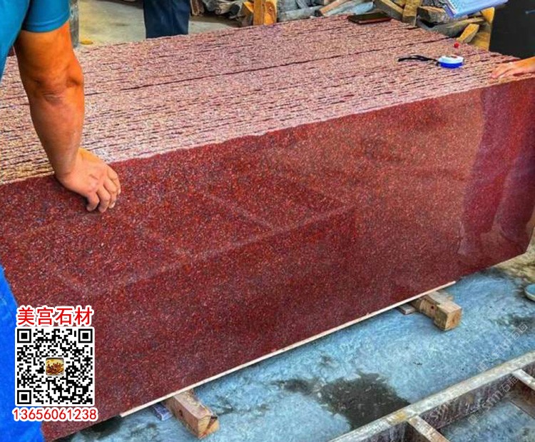 印度紅石材光面別墅精裝紅色花崗巖外墻干掛加州金麻