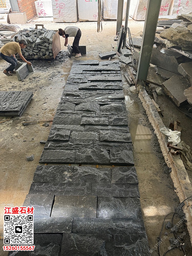 自然面G654芝麻黑蘑菇石凹凸面外墻磚文化石背景墻
