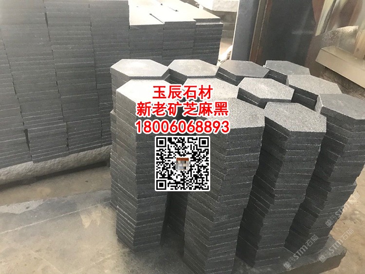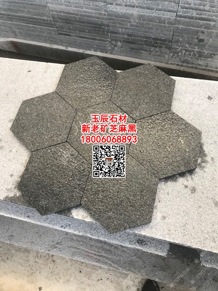 老礦芝麻黑六角磚冰裂紋亂拼碎拼石G654柬埔寨黑石