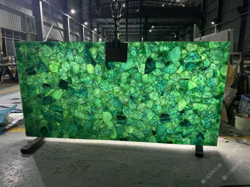批發(fā)定制透光綠水晶大板,定制綠水晶寶石吧臺,家具臺