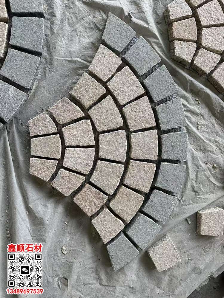 扇形馬蹄石自然面小方塊扇形網(wǎng)貼芝麻黑柬埔寨黑黃銹石