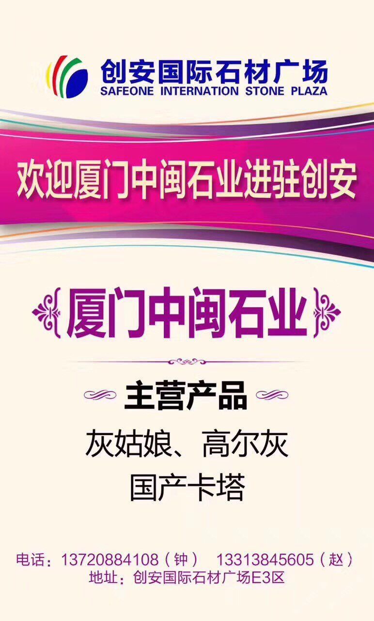 廈門中閩實(shí)業(yè)有限公司 聯(lián)系人:趙先生    133****5605 查看 手機(jī)號(hào)碼:無(wú) 主營(yíng)范圍: 大板批發(fā)、大理石加工、荒料、礦山、石材外貿(mào)、 企業(yè)地址:福建泉州南安市石井鎮(zhèn)虎井村49號(hào)