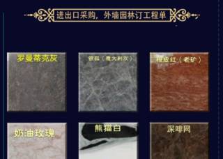 上海亭亭石業(yè)主營產(chǎn)品:愛馬仕灰(深),雅典黑金花,雅典金花,愛馬仕灰,新愛馬仕灰,銀河灰(深),銀河灰(深色),紫玉蘭,法國流金,土耳其灰5,紫羅紅,意大利藍(lán)金沙2,皇家金啡,大花綠1,意大利銀灰(愛馬仕灰),印度綠1,國粹,香雪梅灰,雪山銀狐(黑底),雪山銀狐(白底)企業(yè)地址:上海嘉定區(qū)曹安公路4058號東華環(huán)球北一館H10