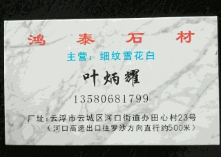 云浮鴻興石材主營(yíng)產(chǎn)品:松香黃,松香啡,松香玉,松香玉1,冰花玉,冰花玉2,冰花玉3,紅龍玉6,藍(lán)冰玉3,藍(lán)冰玉2,意大利水晶藍(lán),白水晶,藍(lán)水晶(花崗巖),白冰玉,0°灰,18度灰,0°冰白企業(yè)地址:廣東云浮云城區(qū)河口馬港開發(fā)區(qū)南側(cè)