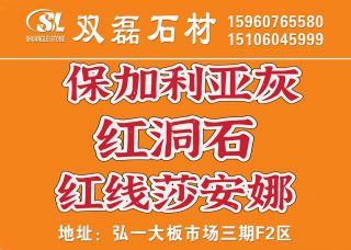 雙磊石業(yè)主營產(chǎn)品:保加利亞灰,月光灰,歐典米黃(老礦),塞浦路斯灰,紅線莎安娜米黃,紅線莎安娜,紅洞石,粉紅洞石,伊朗紅洞,羅馬洞石,羅馬洞企業(yè)地址:福建泉州水頭鎮(zhèn)東升石材超市3通道B4